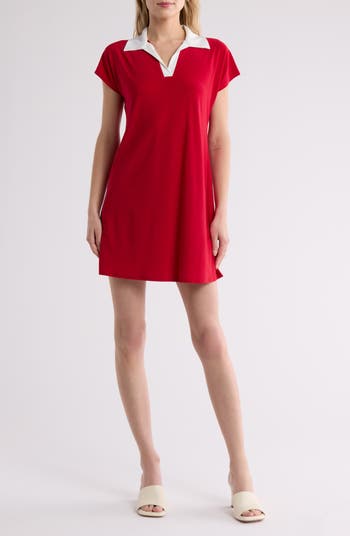 A smart polo collar elevates the look of this versatile A-line dress that has comfortable stretch for easy movement.