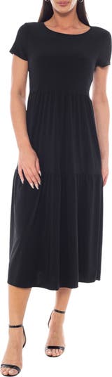 Short Sleeve Tiered Midi Dress
