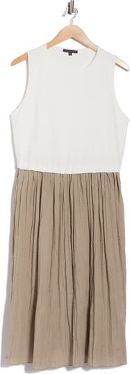 Perfect to dress up or down, this mixed-media maxi dress balances a soft knit bodice with a crinkle-textured skirt for charming style.