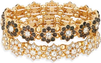 2-Pack Cubic Zirconia Flower Pavé Stretch Bracelets