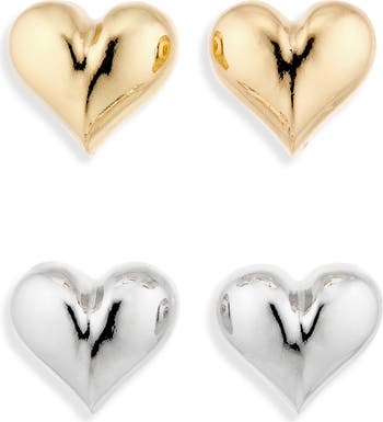 Double the heats and double the love with this pack of stud earrings in a silvertone and goldtone finish.