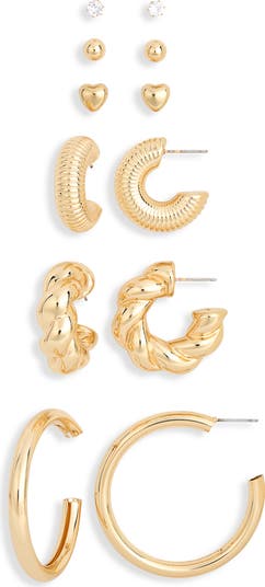 Create a curated ear stack with this assorted set of goldtone plated studs and hoops detailed with luxe textures and silhouettes.
