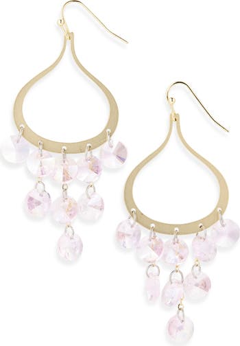 Show off statement shine with these open-teardrop earrings suspending faceted beads.