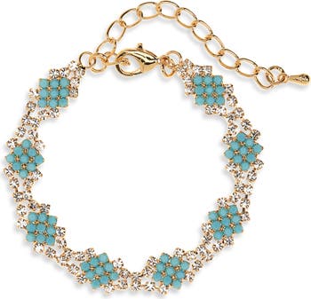 Turquoise and bright-white crystals lend shimmer and shine to a chain bracelet done in a high-shine finish to illuminate your everyday stack.