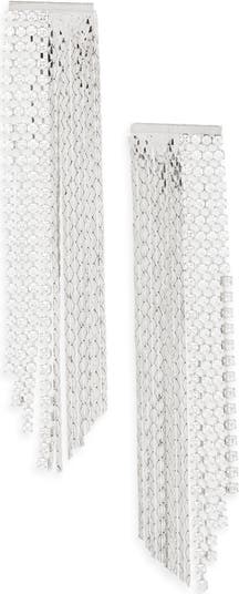 Sparkly crystal chains and flat snake chains catch the light on these swingy fringe drop earrings that bring instant glamour to your night-out looks.