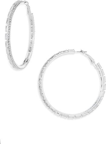 Rows of brilliant mixed-cut crystals to bring light-catching sparkle to these classic hoop earrings, perfect for special occasions.
