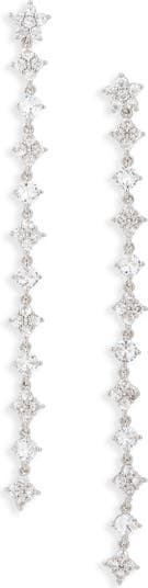 Sparkly crystal clusters illuminate these polished linear-drop earrings that bring glamorous shine to your night-out looks.