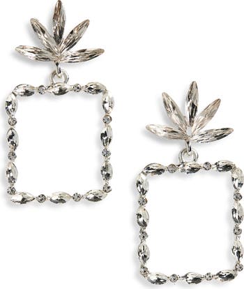 Marquise and round crystals frame these dazzling open-square drop earrings that bring instant glamour to your night-out looks.