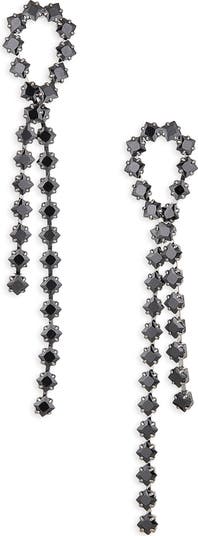 Square-cut black crystals shimmer from these ribbon-shaped drop earrings that bring glamorous shine to your night-out looks.