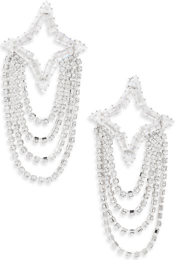 Show off celestial sparkle with these glamorous earrings featuring baguette-cut crystal stars suspending draped crystal chains.