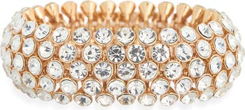 Glam up your night-out look with this glossy metallic stretch bracelet illuminated by sparkly round crystals.