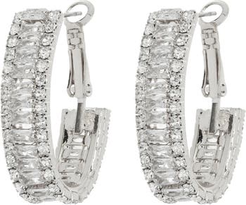 Bright polish adds shine to elegant hoop earrings set with rows of cubic zirconia for extra sparkle.