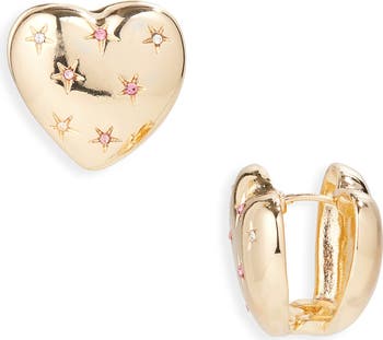 Show off romantic and celestial shine with these polished heart huggies accented by starburst cubic zirconia.