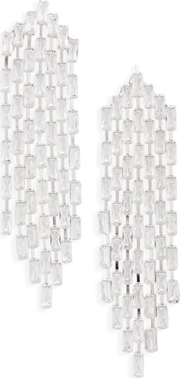 Multiple rows of cubic-zirconia-adorned fringe make an eye-catching statement on polished earrings that are perfect for a night out.