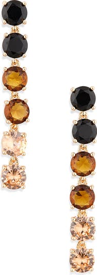 Ombré-hued crystals bring eye-catching shine to polished earrings done in a slender linear silhouette.
