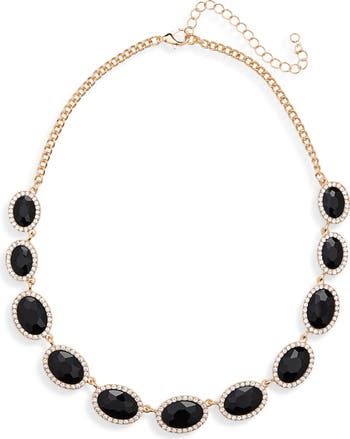 Oval Crystal & Cubic Zirconia Halo Station Necklace