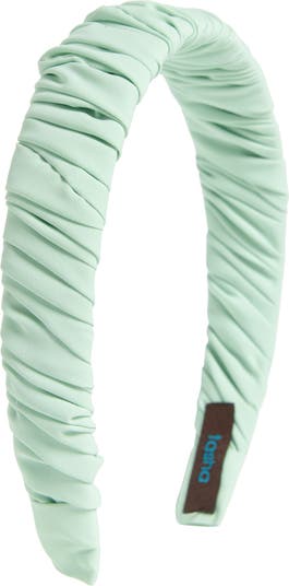 Secure your tresses—and add a pretty flourish—with this slim satin headband wrapped in delicate ruching.