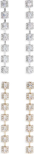 Sparkling baguette and round crystals illuminate these dazzling linear drop earrings that bring instant glamour to your night-out looks.