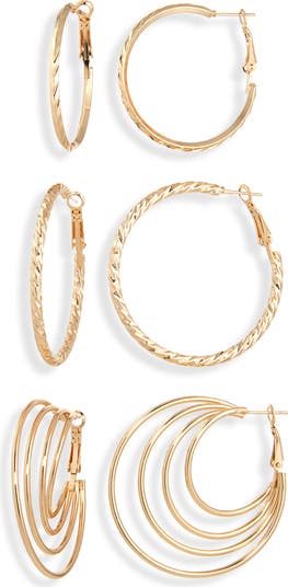 Refresh your jewelry collection with this trio of hoop earrings featuring different textures and silhouettes.
