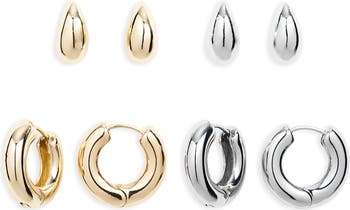 Refresh your jewelry box with this set of four earrings featuring two pairs of hoops in both goldtone and silvertone plating.