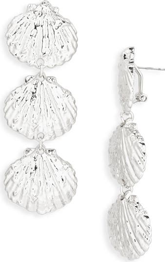 Give off glamorous coastal vibes in these swingy triple-shell drop earrings boasting a high-shine finish.