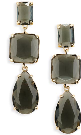 Give your look a little sparkle with drop earrings featuring crystal clear glass stones and a gleaming prong-set frame for added flair.