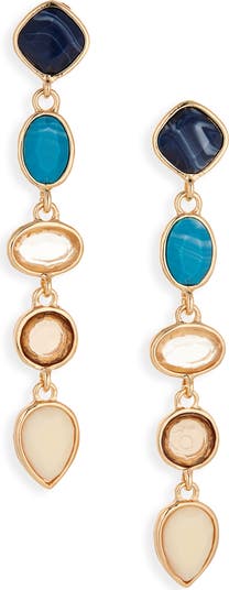Add a pretty pop of color to your lobes with these linear drops showcasing a quintet of faceted stones.