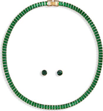 Complete an elegant ensemble with this vibrant set including stud earrings and a matching tennis necklace.