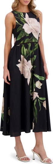 A Ted Baker signature floral print captivates on a sleeveless fit-and-flare dress made from pure, breathable linen and cut to bare a bit of back.