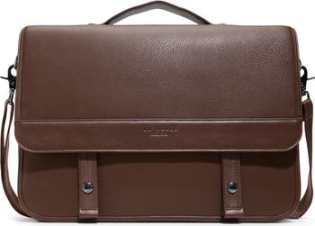 Logo-embossed trim elevates this slim yet spacious and versatile messenger bag made from durable synthetic leather. A handle, an adjustable crossbody strap and a built-in trolley sleeve allow easy toting whether it's the only bag or one among many your managing through transit rides and airport lines.