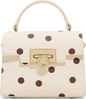 A logo-etched flip lock gives a subtle signature finish to a charming top-handle bag fashioned from faux-leather and outfitted with an adjustable crossbody strap for a custom fit.