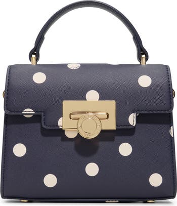 A logo-etched flip lock gives a subtle signature finish to a charming top-handle bag fashioned from faux-leather and outfitted with an adjustable crossbody strap for a custom fit.