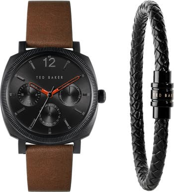 Caine Leather Strap Watch & Bracelet Set, 42mm