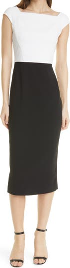 Crisp seaming and a color-spliced design refine the look of this modern and streamlined sheath dress.
