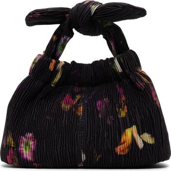 A voluminous top knot adds drama to this buttery suede bag with a removable chain strap.