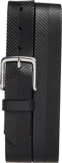 A polished buckle fastens this herringbone-woven leather belt making it a versatile staple for your work-to-weekend lineup.