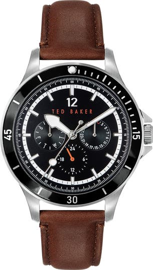 Sleek and functional this classic timepiece rests on a supple leather band and features day, date and 24-hour sub-dials to keep you on schedule.