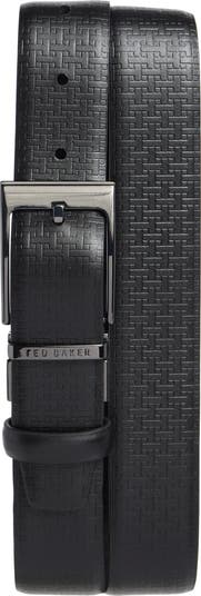 A brushed buckle fastens this soft leather belt that reverses for easy versatility.