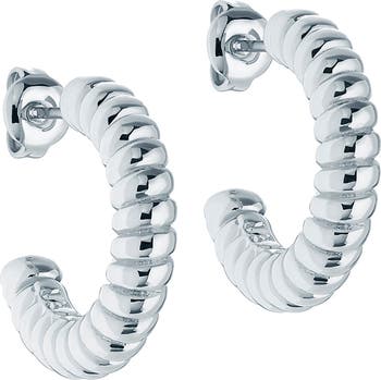 A twisted coil texture adds contemporary appeal to polished hoop earrings.