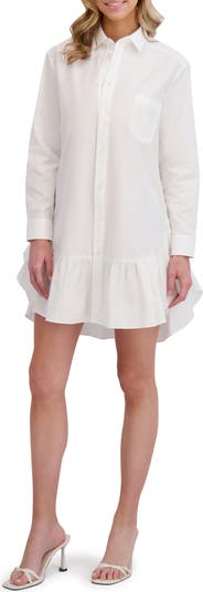 Ruffle Hem Long Sleeve Cotton Shirtdress