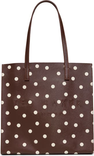 Embossed logo lettering brings signature brand styling to this spacious, structured tote made from faux leather and covered in polka dots.