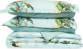 Refresh any bedroom with this duvet cover and sham set boasting a colorful tropical print and made from soft, breathable cotton sateen.