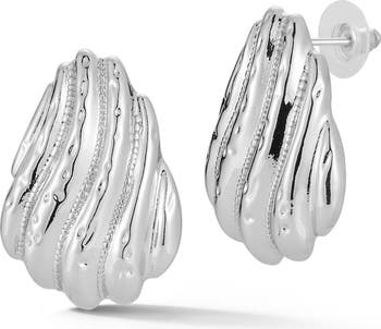 A textured finish amplifies the liquid-like shine of these shell statement stud earrings adding a sleek, modern edge to your everyday style.