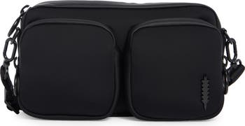 A durable textile exterior refines this sporty crossbody bag designed with spacious front zip pockets for effortless organization of everyday or travel essentials.