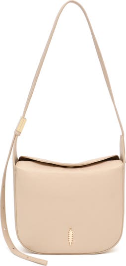 Gleaming hardware accents a space-saving crossbody bag designed with an adjustable shoulder strap and crafted from rich pebbled leather.