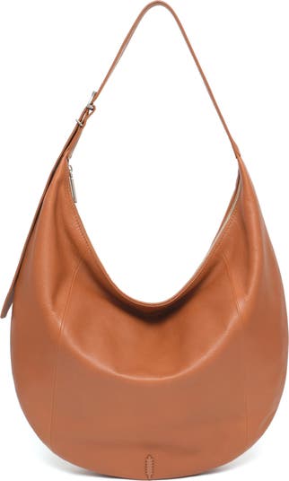 Tonal hardware highlights the clean minimalism of this slouchy hobo bag made from finely grained calfskin leather with a water-resistant finish.