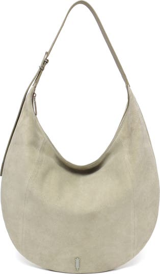 Tonal hardware highlights the clean minimalism of this slouchy hobo bag made from rich calfskin suede with a water-resistant finish.