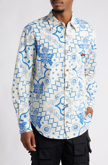 • ICECREAM Running Dog Short Sleeve Denim Graphic Button-Up Shirt