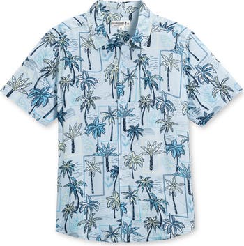 Warm-weather outings have met their match with the breezy, lightweight feel of a button-up shirt patterned in beachy palms.