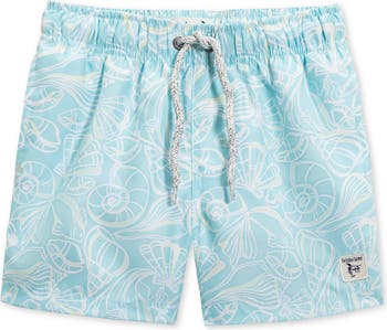 They'll have a blast while making a splash in these quick-drying volley swim trunks featuring a fun shell print and comfortable elastic waistband.
